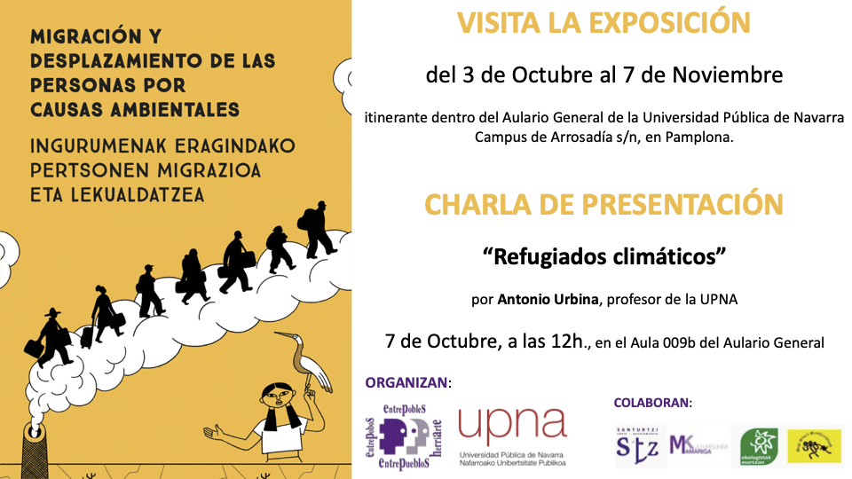 📍 Lugar: Universidad Pública de Navarra (Pamplona–Iruña) 🏛️ Sala: Aulario General – Aula 009b 🗓️ Fecha: Martes 7 de octubre de 2025 🕕 Hora: 12:00 h 🎤 Ponente: Antonio Urbina, profesor y especialista en energía y sostenibilidad. Miembro y colaborador de Entrepueblos-Herriarte. La charla se enmarca en la exposición “Migración y desplazamiento de las personas […]