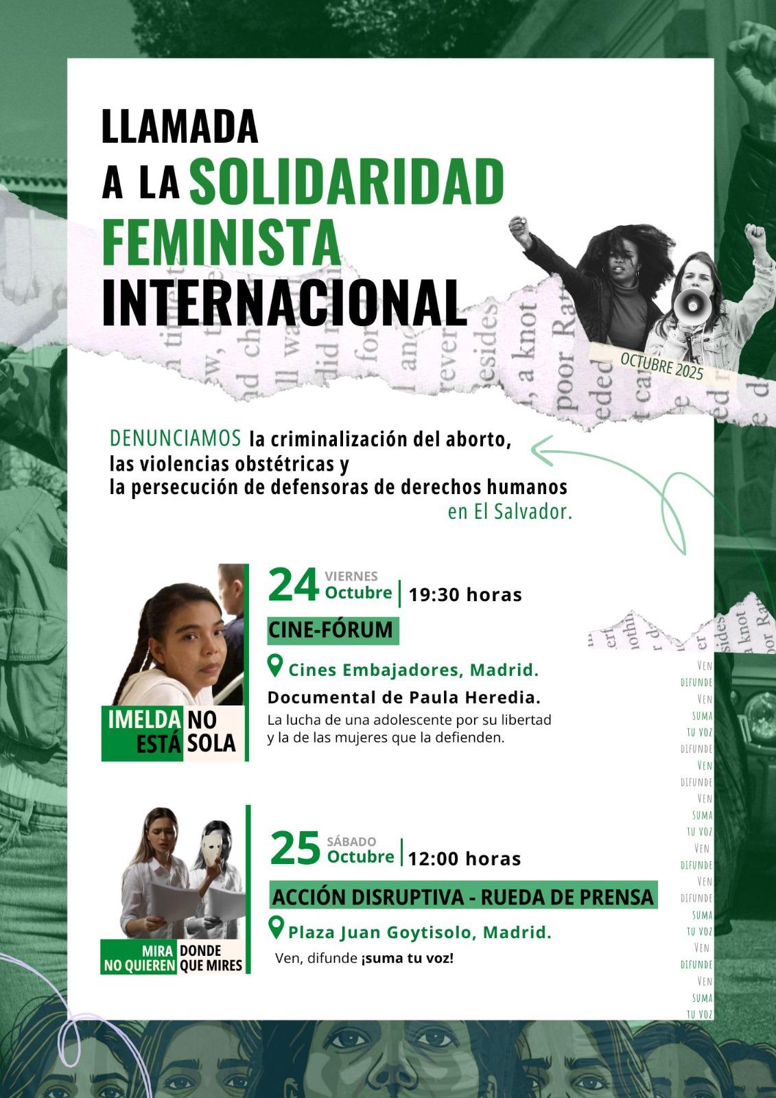 📢 Llamada a la Solidaridad Feminista Internacional🔥 Organizaciones Feministas💜 de apoyo a las compañeras de El Salvador!💜 📢 Denunciamos la criminalización del aborto, las violencias obstétricas y la persecución de las defensoras de Derechos Humanos en el Salvador. Os invitamos 📆 24 Octubre a las 19:30 Cine Embajadores-Documental 📆 25 Octubre a las 12:00 Acción […]