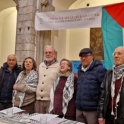 La vaga de fam ha començat a les 11 hores amb un ritual d’inici i un acte solidari al Migra Studium (carrer Palau, 3, Barcelona), on podreu trobar a les vaguistes cada dia, de 10 a 21 hores. La Comunitat Palestina a Catalunya, La Fede i l’Associació Catalana de Jueus i Palestins han donat el seu suport a les tres veteranes activistes per la pau, que han volgut compartir les seves motivacions per iniciar aquesta acció de reivindicació pacífica: