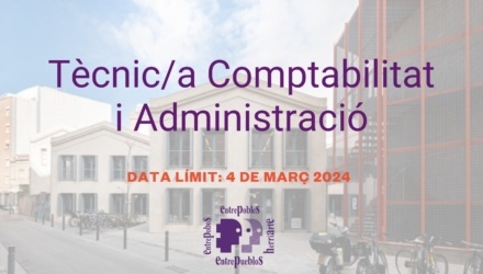 A Associació Entrepobles estem buscant un/a tècnic/a per al departament de Comptabilitat i Administració.